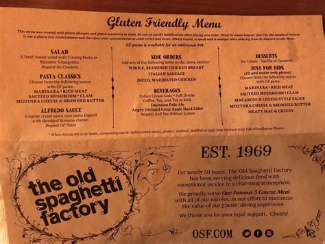 See more of spaghetti factory on facebook. The restaurant has a unique atmosphere that is perfect for diners. If you are in the mood you can upgrade to a half lasagna +$5.50, half.